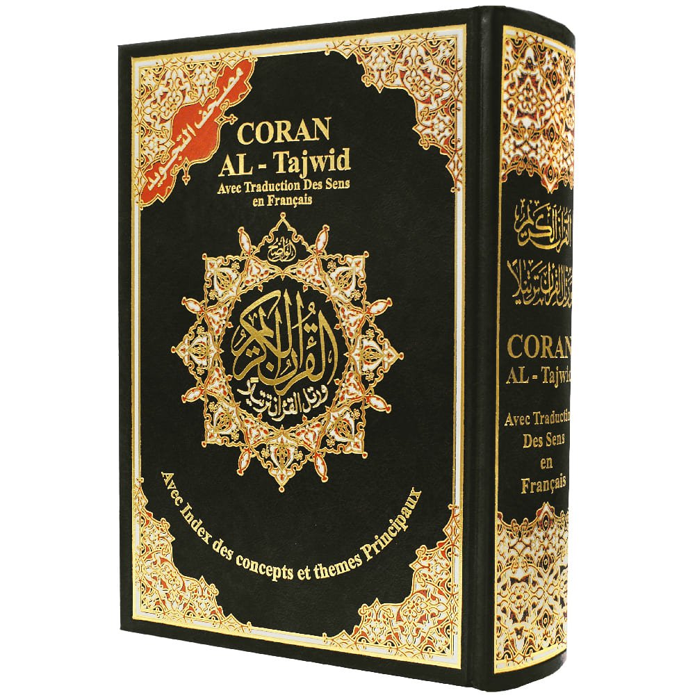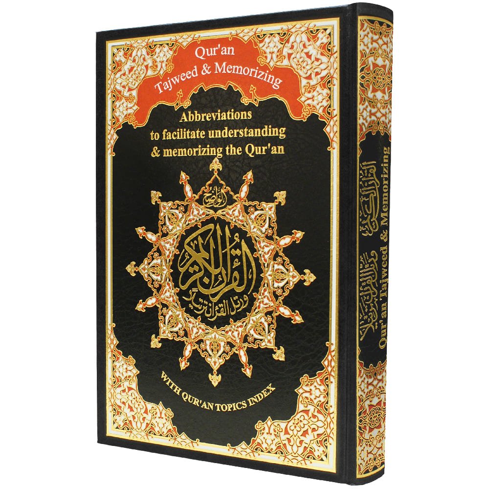 مصحف التجويد- تجليد جلد فاخر – مع تفسير الكلمات وفهرس المواضيع، قياس 17×24سم
