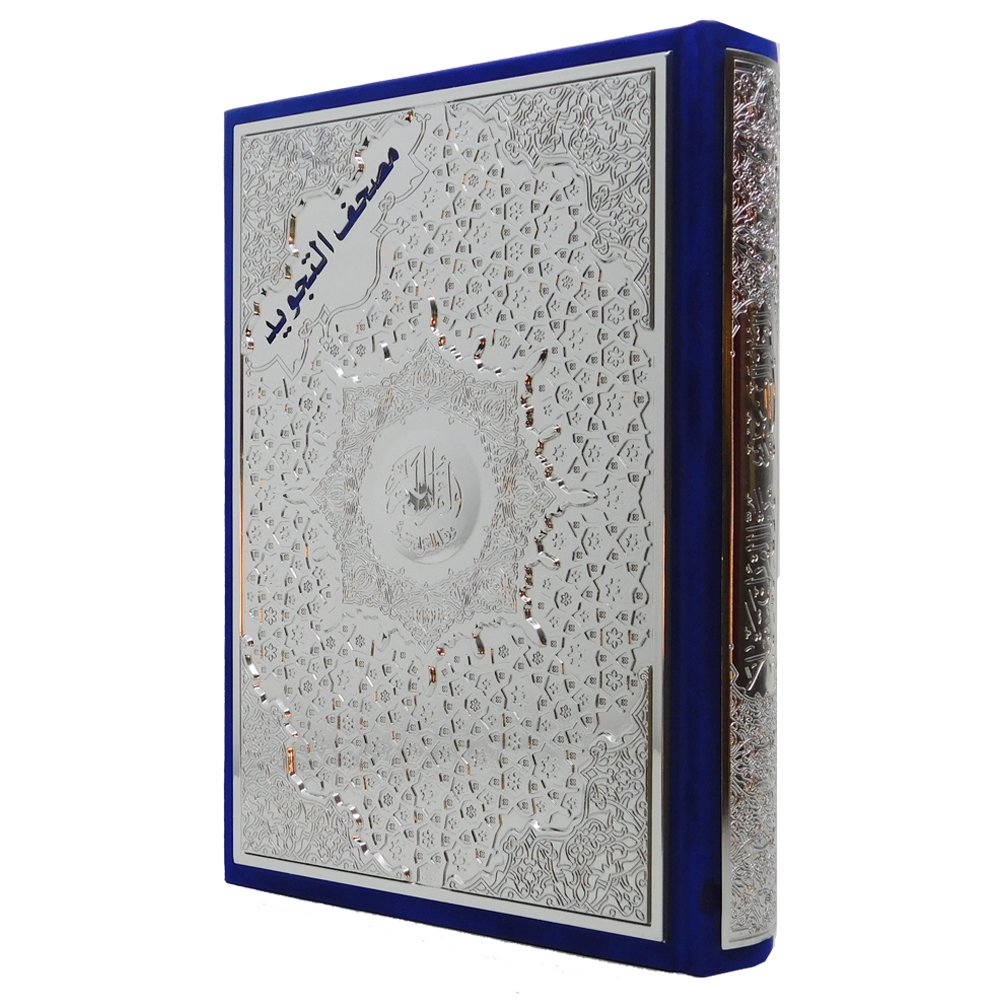 مصحف التجويد – غلاف مخمل بلوحة بلاستيكية مذهبة ومفضضة – مع تفسير الكلمات وفهرس المواضيع، قياس 17×24سم