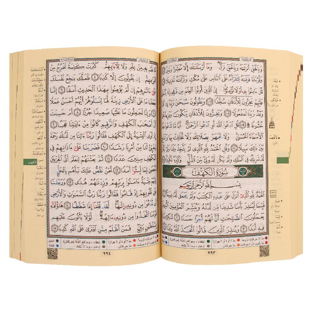 مصحف التجويد: ييسّر لك التّطبيق العمليّ لأحكام التّجويد ويصبح ذهنك متفرّغاً لفهم معاني آيات القرآن الكريم من خلال الترميز الزمنيّ واللونيّ لأحكام التجويد