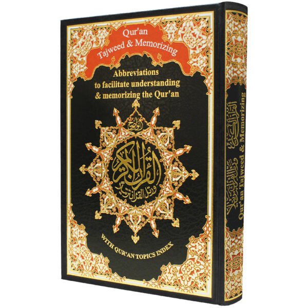 Tajweed Quran in a luxurious leather cover ( with words meanings and topics index ), size: 17×24 cm