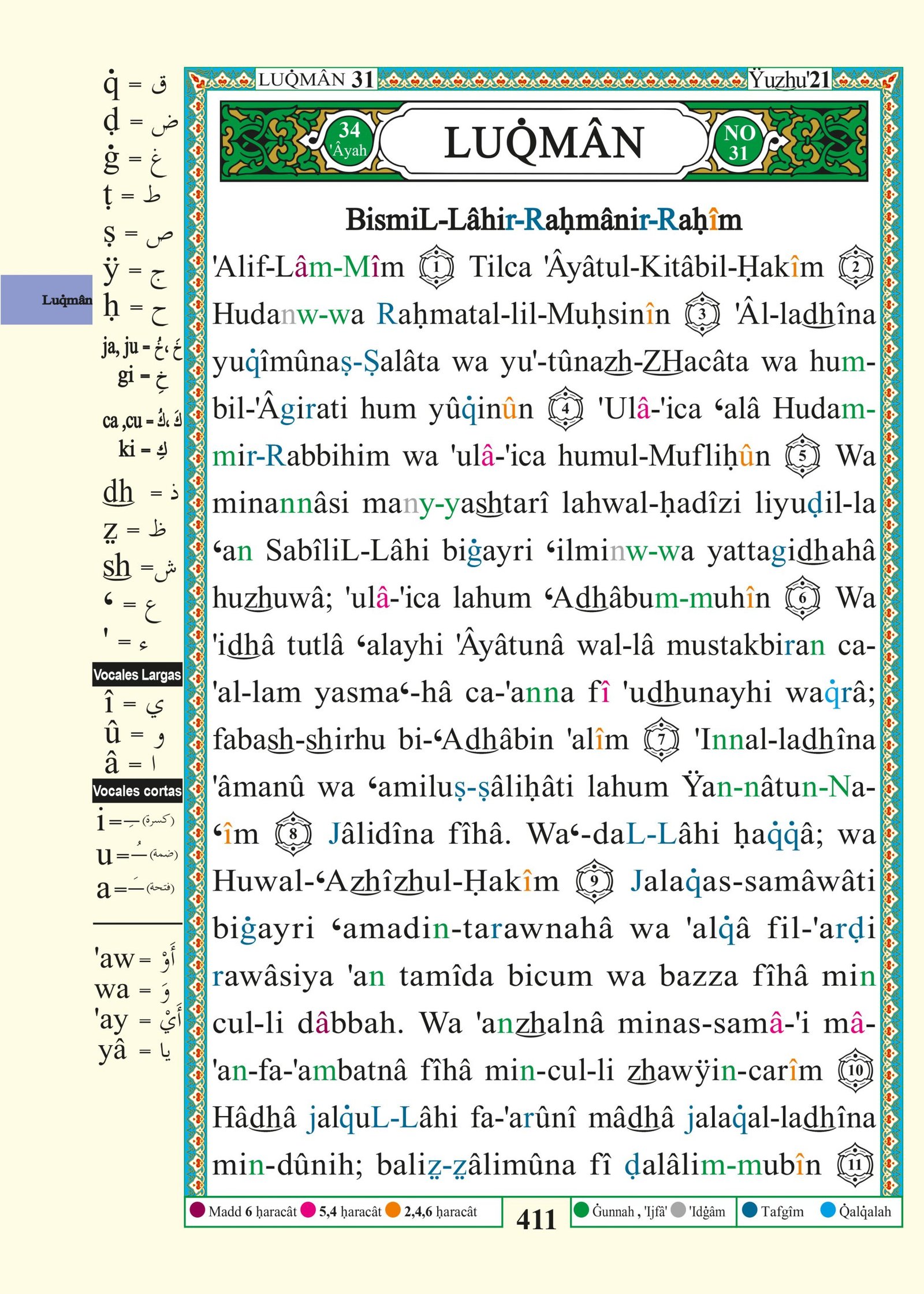 By applying 3 colors categories you can apply 28 Tajweed rules.